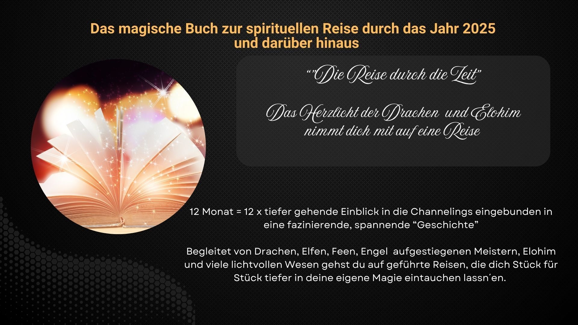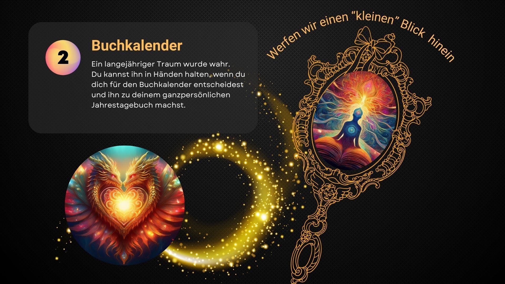 ✦ *Erwecke den Zauber deines Lebens!* Bestelle jetzt deinen Buchkalender und lass dich von der Fülle der Möglichkeiten verzaubern. Mach dieses Jahr zu etwas ganz Besonderem – für dich, für deine Träume und für deine Seele!