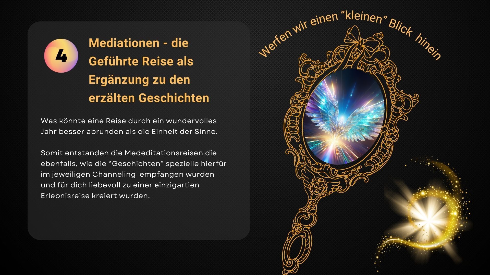 *Regelmäßige Impulse*: Sei Teil einer magischen Community, die dir fortlaufende Inspirationen und Anregungen bietet. Lass dich überraschen und finde neue Wege, um dein Leben zu bereichern!